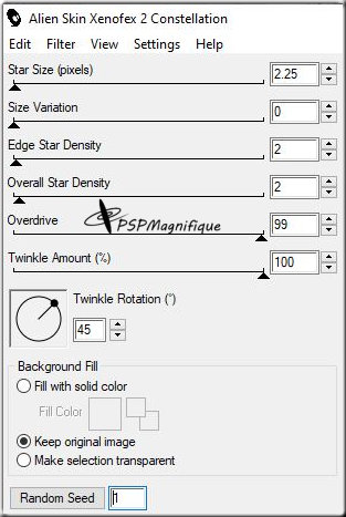 En herhaal het filter Alien Skin Xenofex - Contellation klik 1