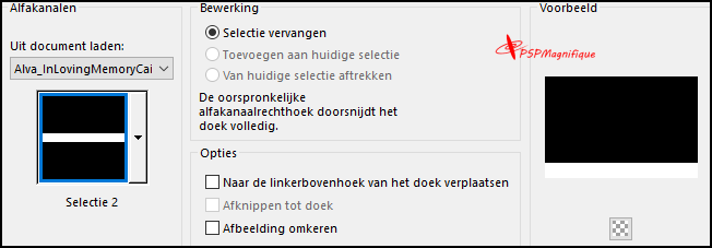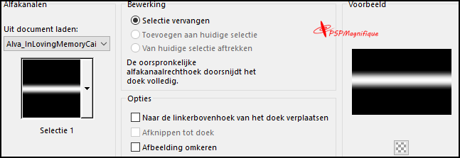 Selecties -Selecties laden/opslaan -Selectie laden uit alfakanaal- Selectie 1