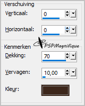 Horizontal et vertical à 0 - Opacité à 70 - Flou à 10 - Couleur noire.