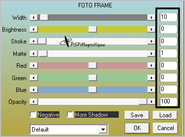 Foto Frame avec les paramètres suivants