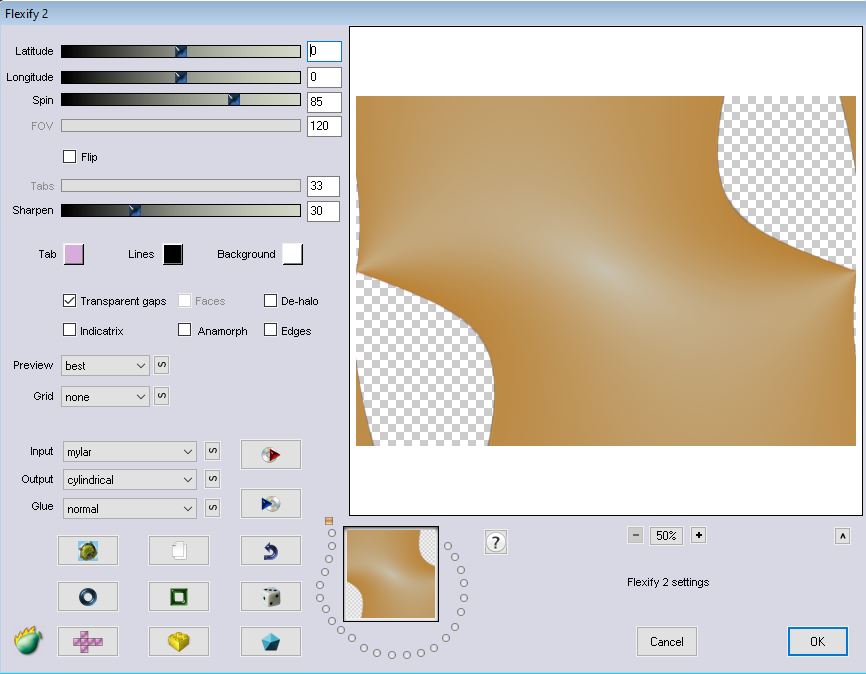 Effets - Effets géométriques - Inclinaison comme suit