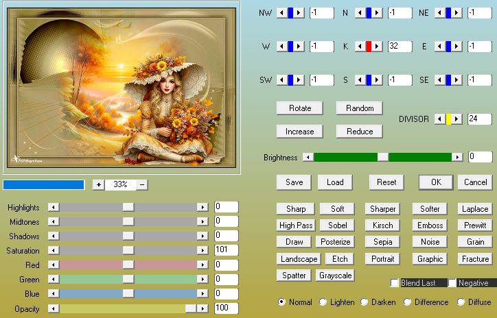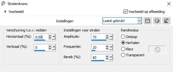 Effets - Effets de distorsion - Rayonnement avec ces réglages