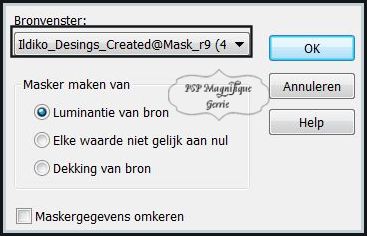 Luminantie van bron aangevinkt en Maskergegevens omkeren niet aangevinkt
