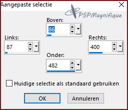 Selecties - Aangepaste selectie met onderstaande instellingen