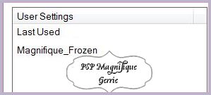 Tab-Settings-User Settings and select my file -Preset - Magnifique_Frozen and OK